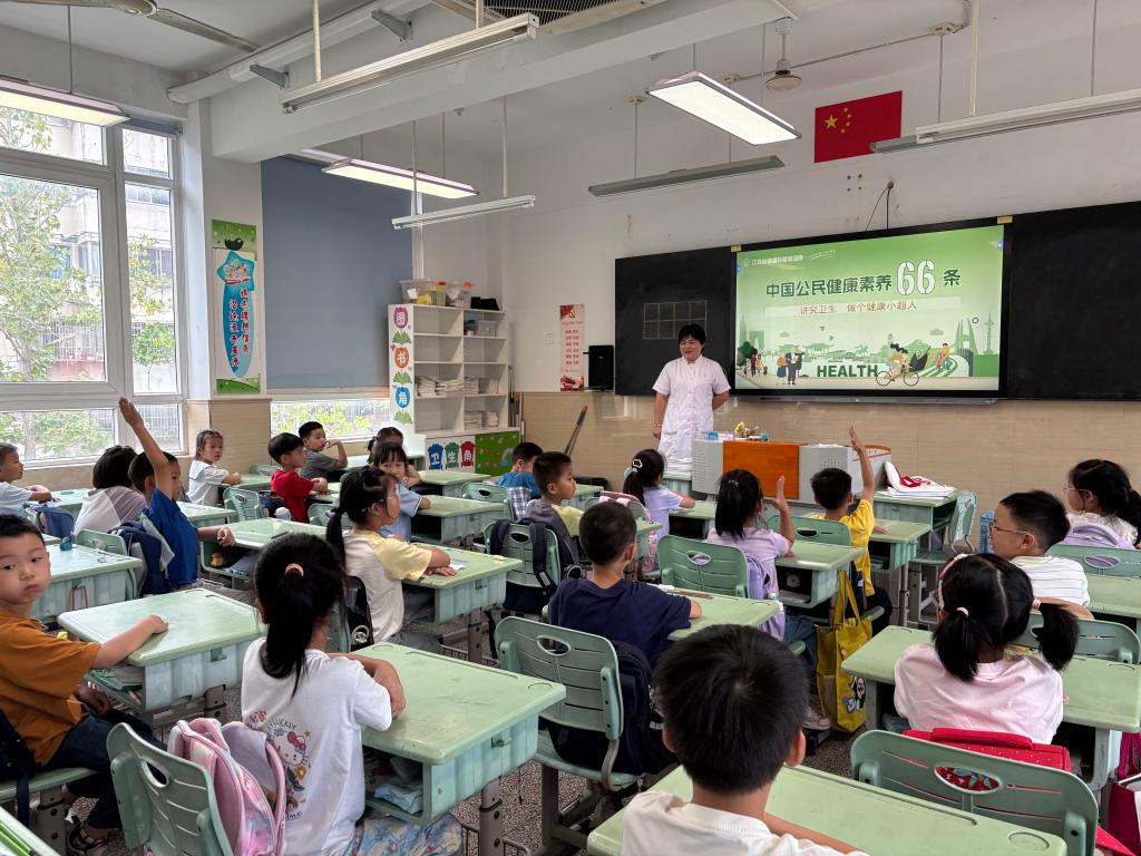 讲堂上,家长讲师借助趣味动画与生动案例,向孩子们详解七步洗手法、科学戴口罩等实用技能,强调勤洗手、常通风、不随地吐痰等习惯对预防传染病的作用,还示范了家庭消毒要点,提醒消毒剂不可混合使用。互动环节中,孩子们踊跃回答问题,积极参与情景模拟,现场气氛热烈。