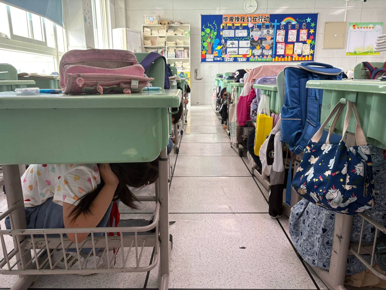 5月20日,四10班开展地震逃生演练。警报声响起,同学们迅速抱头躲在课桌下。二次警报后,大家弯腰捂头,沿指定路线有序撤离到博文广场。整个过程紧张有序。通过演练,同学们掌握了防震知识,提升了应急避险能力。