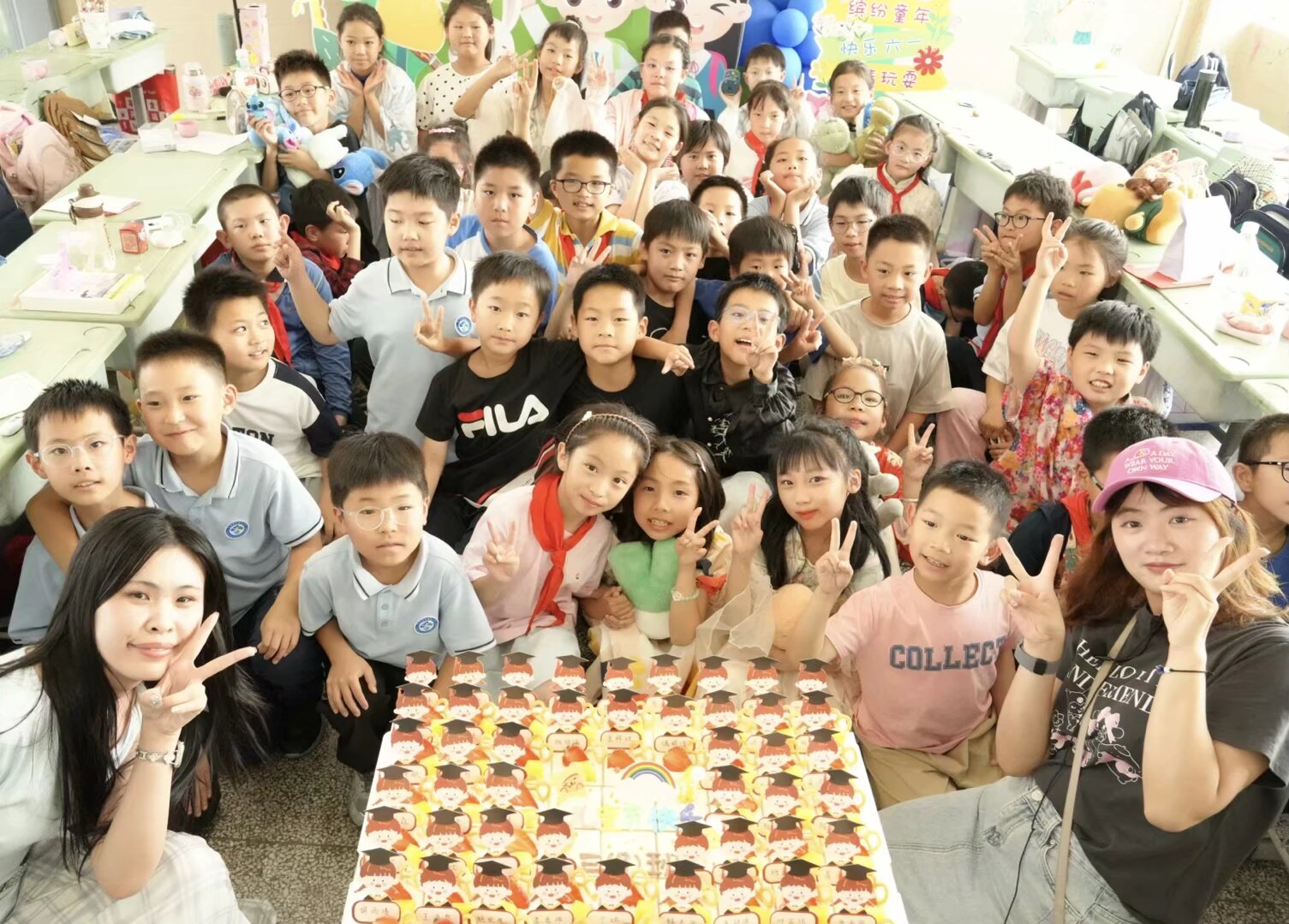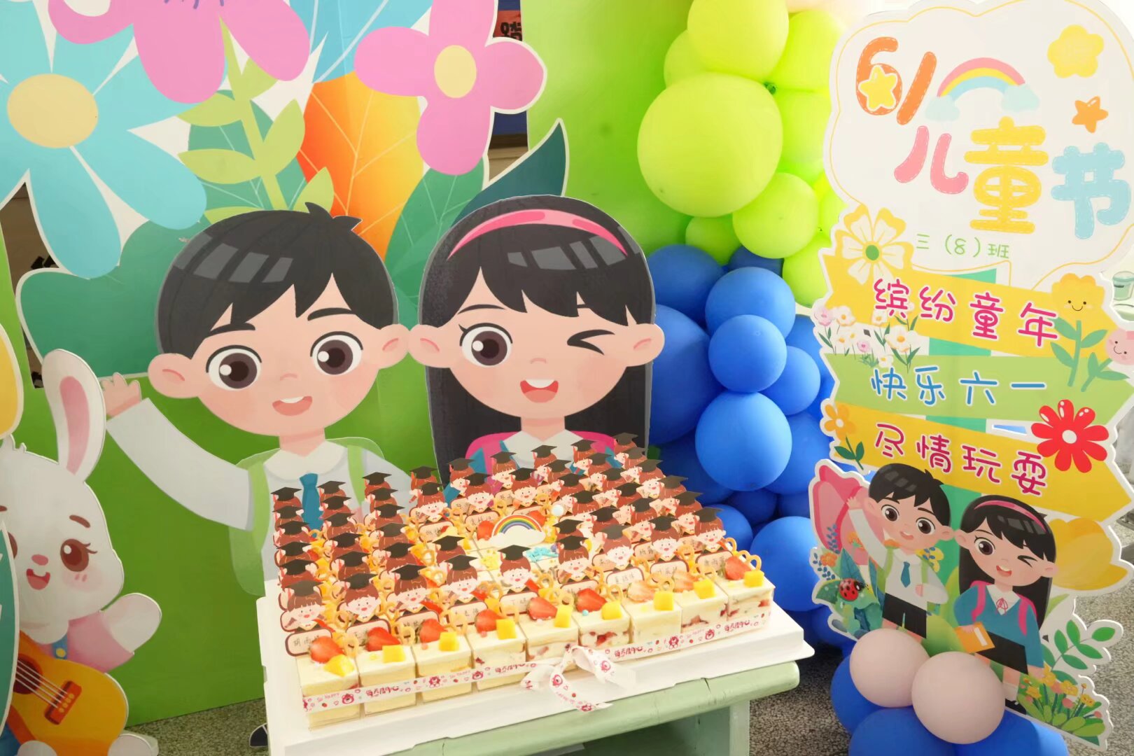 6月1日中午,XX小学三年级教室变身欢乐海洋,以"梦想起航 童趣无限"为主题的六一庆祝活动拉开帷幕。