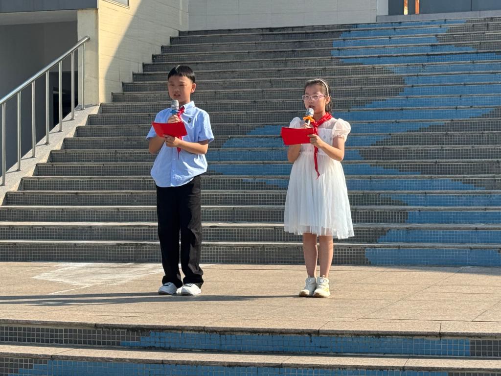 郁:担任本周升旗手的是经思辰、陶源。护旗手是 潘沈喆、陶然 。他们尊敬师长、团结同学、文明有礼,是我们学习的榜样。