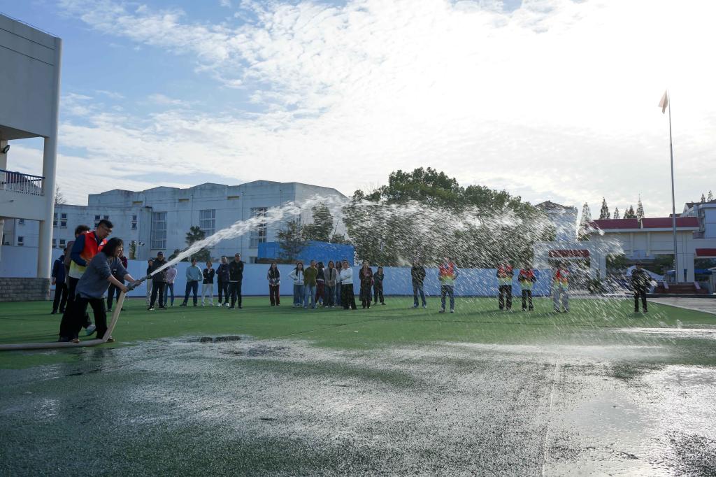 消防趣味运动会现场热闹非凡,教职工代表们齐聚一堂,共赴这场“安全盛宴”。他们手提灭火器,对准火点认真演练,教职工代表们轮番上阵,在实战中熟悉灭火流程,默契配合间尽显协作风采。除此以外,教师们还挑战了消防水枪接管与喷射,从管路衔接到接口密封,一步步解锁实战技能。这场“寓教于乐”的趣味竞技,让老师们在欢乐氛围中巩固灭火技能,锤炼应急反应能力,更深化了团队协作与安全防范意识。