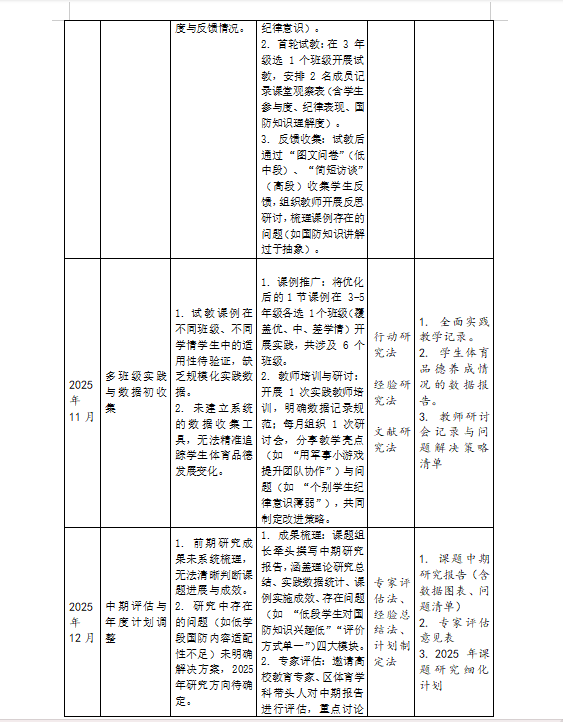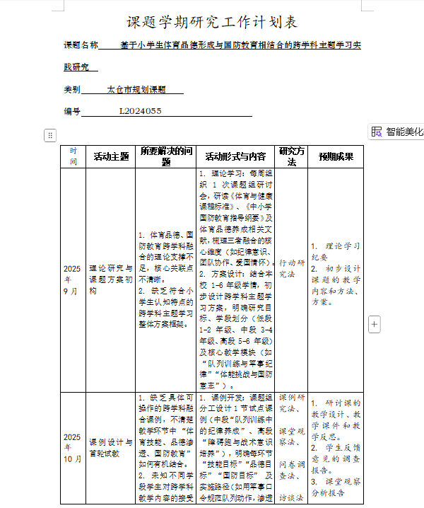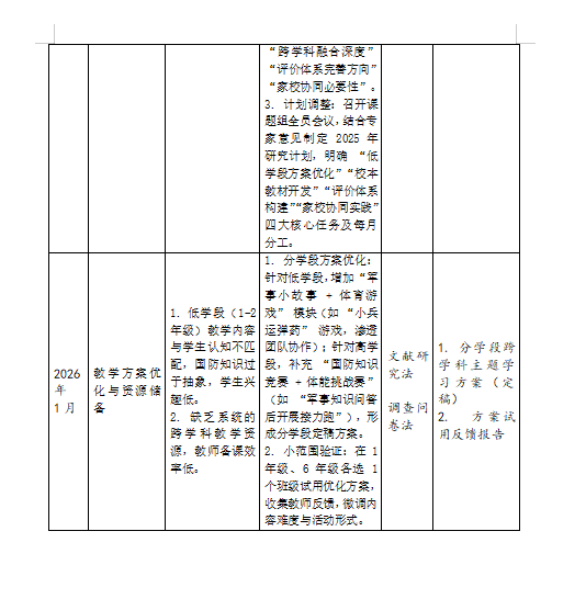 课题学期研究工作计划表(2025年9月--2026年1月)